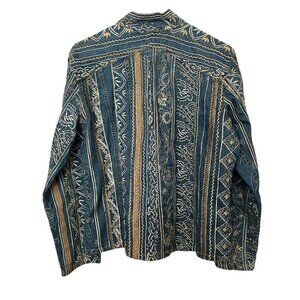 CHICO'S Denim Gold All Over Embroidered Sequinned Button Down Show Shirt Size M