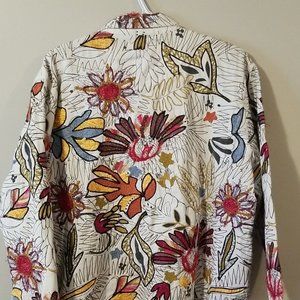 CHICO'S Floral Embroidered Colorful Button Up Denim Jacket Womens Size 2
