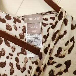 Used on 1 vacation and in very good condition but for a (pictured) tiny run at back of neck not too noticeable due to the print. Selling due to having colours done and now purging browns & beige from my closet.