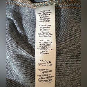 CHICO’S Size 0 Lady’s XS X-Small Small Dark Denim With Trim Jean Jacket