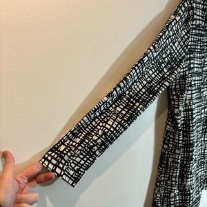 V-Neck Criss-Cross Print 100% Pima Cotton Made in India Tunic Top. Lovely top to dress up ot down. Career or casual, you will look put together in a flash.