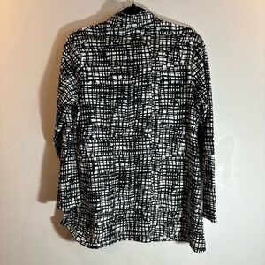CHICO’S Sz 2 V-Neck Criss-Cross Print 100% Pima Cotton Made in India Tunic Top