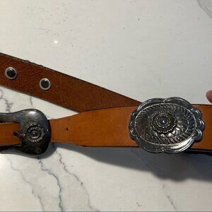 CHICO’S Belt Leather With Metal Embellishments Sz M/L Boho. Bohemian. Western. Country.
