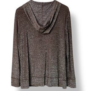 CHICO’S Travellers Brown Metallic Lurex Thread Full Zip Hoodie Long Sleeve Sz L
