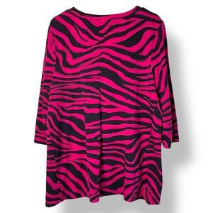 CHICO’S ZENERGY French Terry Fuschia Black Zebra Print Tunic Top 3/4 Sleeve 16