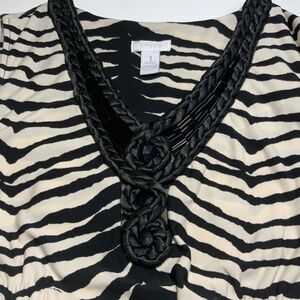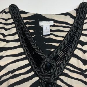 CHICO’S Zebra Print Sleeveless Maxi Dress Vee Neckline Beading Detail US Sz M