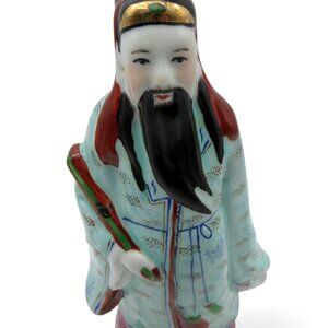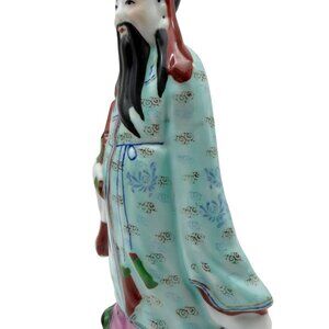 CHINESE Immortal Deity Ceramic Figurine with Long Beard China Vintage 8.5"