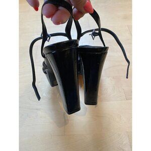 CHINESE Laundry New "Amella" Ankle Strap Black Platform Sandal Patent Heel
