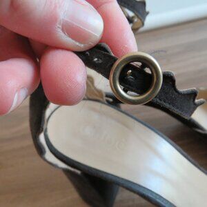 CHLOE Lauren Scalloped Ankle Strap Suede Block Heel Shoes Academia - Size US 7.5
