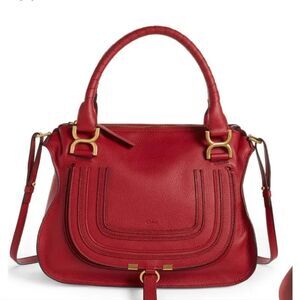 Embrace Chloé's feminine mood with this Earthy red Marcie calf leather tote.The most iconic of Chloé bags Showcasing the soft, curved lines that define the maison and evoking a distinctly 1970s sensibility through the braided top handles, this Italian-crafted style is punctuated with polished gold-tone hardware and outlined with exquisite stitch detailing in tribute to the brand's equestrian style codes. Secured with a top zip fastening, the sizable silhouette opens to a cotton-lined interior with a zipped pocket and a discreet logo patch and comes complete with a front flap pocket and a front embossed logo stamp for a signature finish. The perfect balance of nostalgia and newness, does not come with strap nor dust bag!