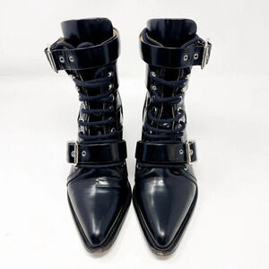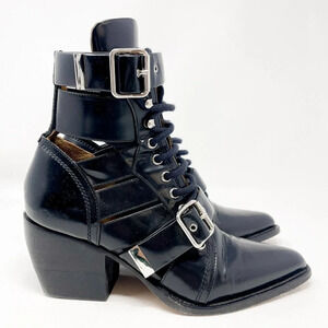 CHLOE Rylee Glossed Leather Ankle Boots Cut Out Black Size 37/7