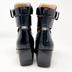 CHLOE Serina Rylee Glossed Leather Ankle Boots Cut Out Black Size 37/7