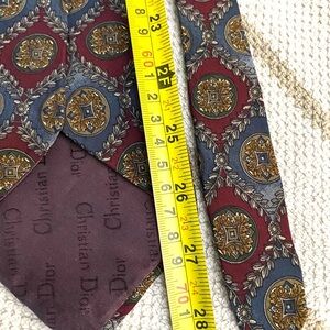 With a length of a classic 57 to 60 inches and a width of 3 ¾ inches, it hangs just right for a polished finish. This designer tie, made in Canada, embodies the spirit of the 70s, making it ideal for weddings, abstract themed events, or simply to elevate your daily office wear. A true vintage gem from the iconic house of Dior.