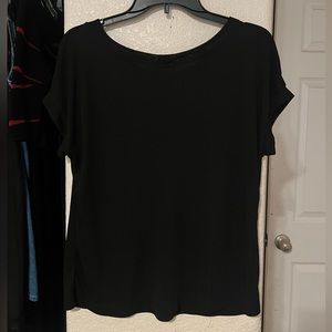 True vintage Christian Dior brand slinky black "model off duty" top. Boxy shape, small caplet sleeves. Wider neck, more or less a scoop neck. Very simple understated elegance. Somewhat sheer, very stretchy and slinky material. In good pre-owned vintage condition. Please refer to measurements below!