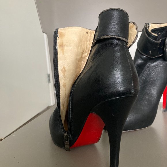 AUTHENTIC CHRISTIAN LOUBOUTIN Black leather ankle boots with belt strap around the ankle and zipper on the insides.