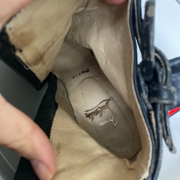 As shown in the images, these shoes are well-loved, but in generally good condition. Some of the leather is worn and the ankle straps are slightly flaky. There is wear inside, with slight staining (as shown). Considering this, I am open to offers!