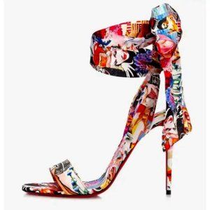 CHRISTIAN LOUBOUTIN Sandale du Désert Mixed-Print High-Heel Lace Up Sandal 37.5