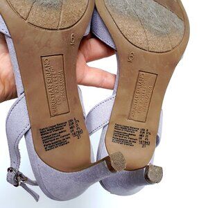 Lovely springtime heels, great for the office or an ice-cream date. Romantic pastel violet colour (cool tone, orchid, lilac), very feminine and delicate. Material is breathable fabric with faux suede effect.
