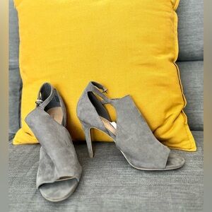 Bought from Payless shoes about 3 years ago for $55 plus tax. Store tag is still in, no wear. Size is 7W. Very feminine and versatile looking heels, can be great both for outings and office work. The material is gray suede, there is a buckle strap. Pictures don’t do justice to them.