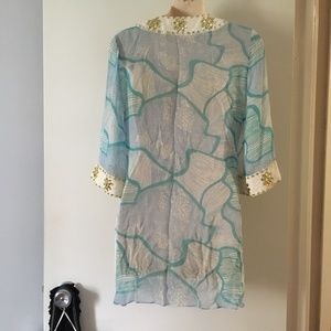 CHRISTIANE CELLE CALYPSO Pure Silk Chiffon Embellished Beach Blouse XS