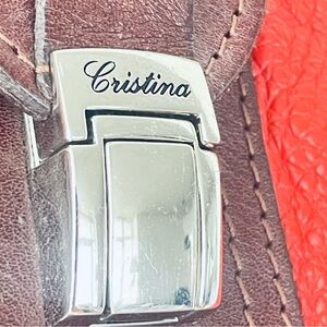 Christina leather bag, Italian leather shoulder bag, pebbled leather handbag, orange brown leather purse, designer shoulder bag, preloved luxury bag, made in Italy handbag, silver hardware bag, stylish leather tote, vintage shoulder bag, women’s Italian leather bag