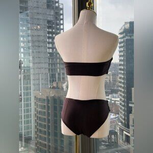 Stretch nylon jersey bandeau-style bikini top and low-waist bikini bottom from Christopher Esber, featuring his signature barbell hardware.