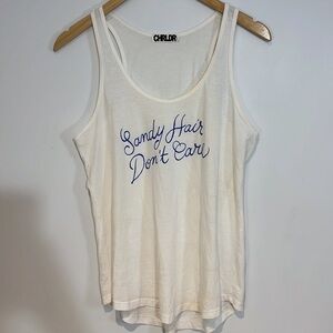 Super cute CHRLDR tank top with cursive letters. Sandy hair don’t care.