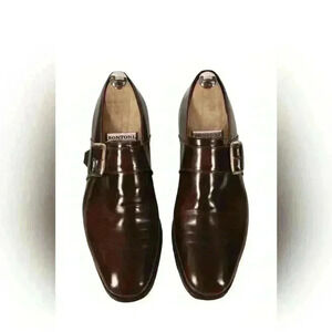 From the illustrious Northhampton maker, Church's is known for their benchmade footwear. These brown single monkstrap "Westbury" models feature a smooth, rounded toe, leather sole and prominent buckle. Fits true to size. Fantastic patina