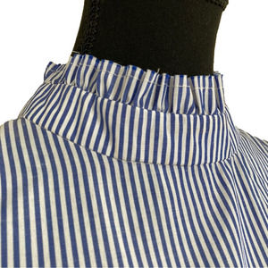 CI Sono blue & white pinstripe high collar sleeveless peplum blouse. Size M