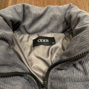 CIDER Corduroy Stand Collar Solid Pocket Puffer Jacket, Blue, in size xs. No rips or stains, pristine condition. Pockets and cinchable waist.