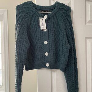 This Cider Peacock Button Up Cardigan in size small is completely brand new (never worn, with tags) and in excellent condition.