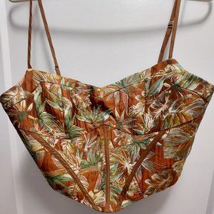 CIDER Women's Floral Spaghetti Straps Corset/Bustier- Brown/Bronze/Green Medium