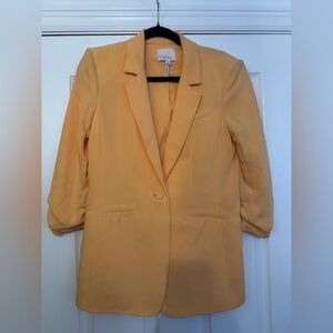 Look polished and professional in this Crepe Khloe Blazer. This expertly tailored piece features a collared neckline, notched lapels, and stylized sleeves for a look that is modernly classic. The bright Marmalade color will have you standing out with sophisticated style. Make a powerful statement with this must-have blazer.