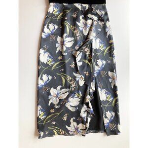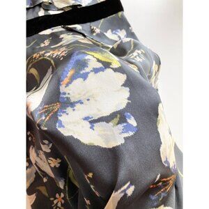 CINQ A SEPT Leena Floral Silk Charmeuse Ruffle Velvet Midi Sheath Dress, Size 2