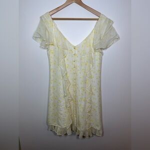 CINQ à Sept Silk Pale Yellow Floral Ruffle Georgia Dress Size 10