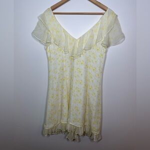 CINQ à Sept Silk Pale Yellow Floral Ruffle Georgia Dress Size 10