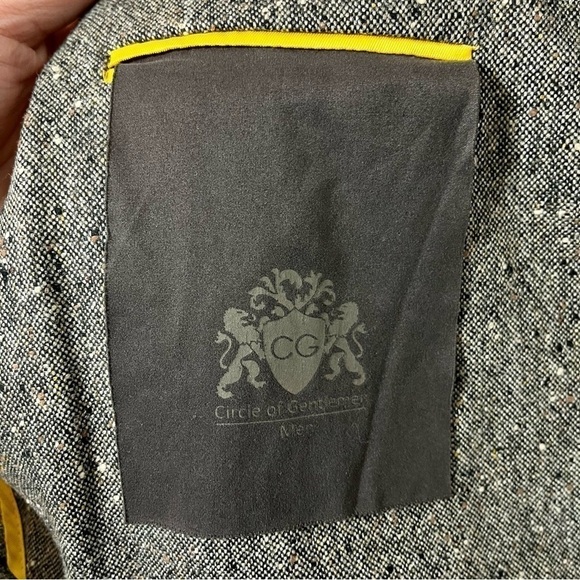🔹 CIRCLE OF GENTLEMEN Wool Grey Blazer Brown Suede Elbow Patch with Yellow interior lining.