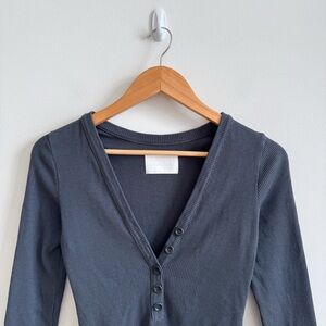 CITIZENS OF HUMANITY • Aideen V-Neck Henley Top in Charcoal