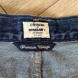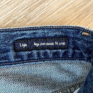 CoH Citizens of Humanity Liya Blue High Rise Crop Jeans. Medium wash distressed classic fit premium vintage jeans.