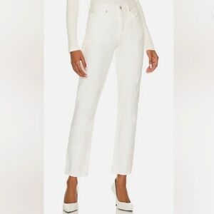 ▫️Iconic Horseshoe barrel-leg silhouette in crisp white