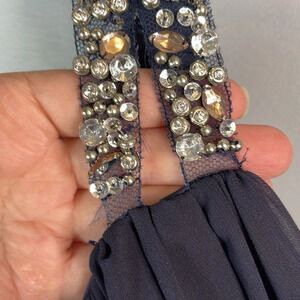 CITY STUDIO One Shoulder Embellished Prom Dress Navy Chiffon Crinoline *As is 13