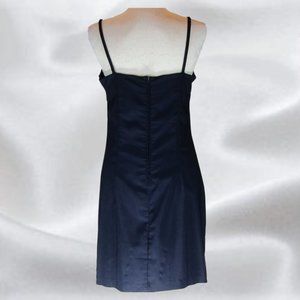 CITY Triangles Navy Blue Dress in size 9 falls above the knee and has spaghetti straps and a straight across neckline . A great summer dress to wear for any dressy casual event. Excellent pre-owned condition with no flaws, measurements in photos. Made in the USA. Measurements in photos - note measurements taken flat and unstretched. Waist, Hip and armpit to armpit (chest) is then doubled.