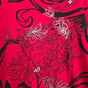 CJ BANKS Red & Black Jewelled 3/4 sleeve Top 2X