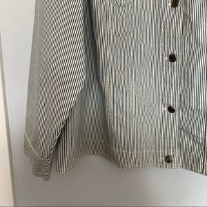 CJ Banks Christopher Banks micro stripe button front jacket EUC 2X cream and grey stripes