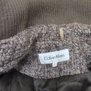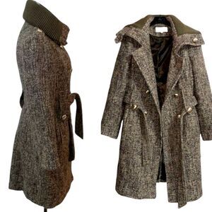 CK spring fall military belted thick wool coat size 6 marled taupe