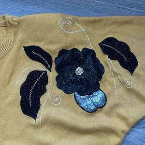 Super fabulous vintage sweater! This sweater is one of a kind and has bubble sleeves, gorgeous flowers and shoulder pads. Perfect to wear with anything.