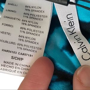 Size Womens Small. Made of 84% Nylon and 16% Spandex (Hand wash only)