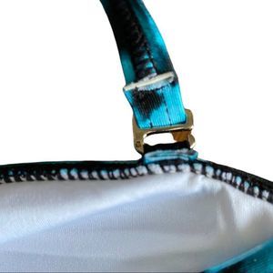Detachable/attachable straps with gold tone fixtures. Straps are adjustable, and have a small hook to keep it easy and secure.