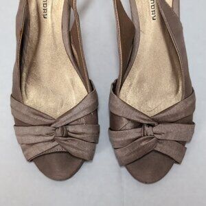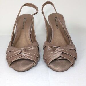 CL By Laundry Slingback Cork Wedge Sandals Peeptoe Satin Heels Shoes Size 9