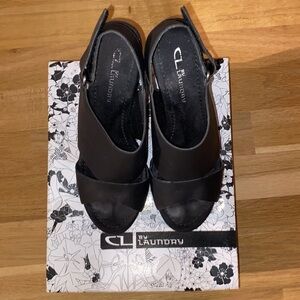 CL by Laundry, black wedge heels w/ silver tone studs, style Cutey,original box
